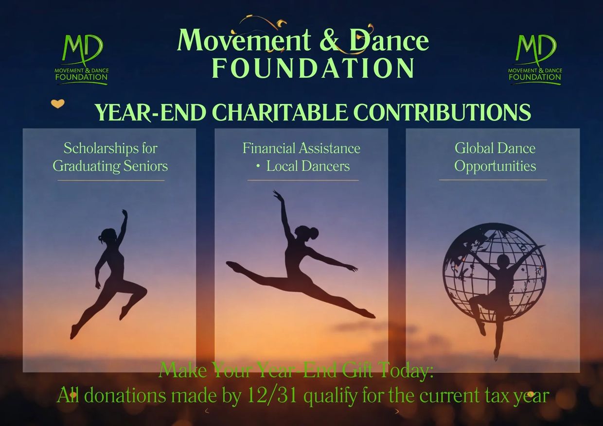 The Movement & Dance Foundation exists to expand access to dance education and movement-based opportunities by removing financial and social barriers for youth locally and globally. Through scholarships, financial assistance, and community outreach, we empower young people to grow with confidence, creativity, discipline, and empathy—using dance as a catalyst for personal and community transformation.